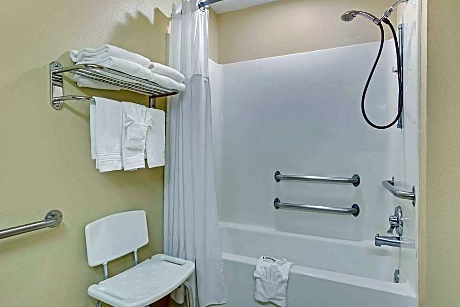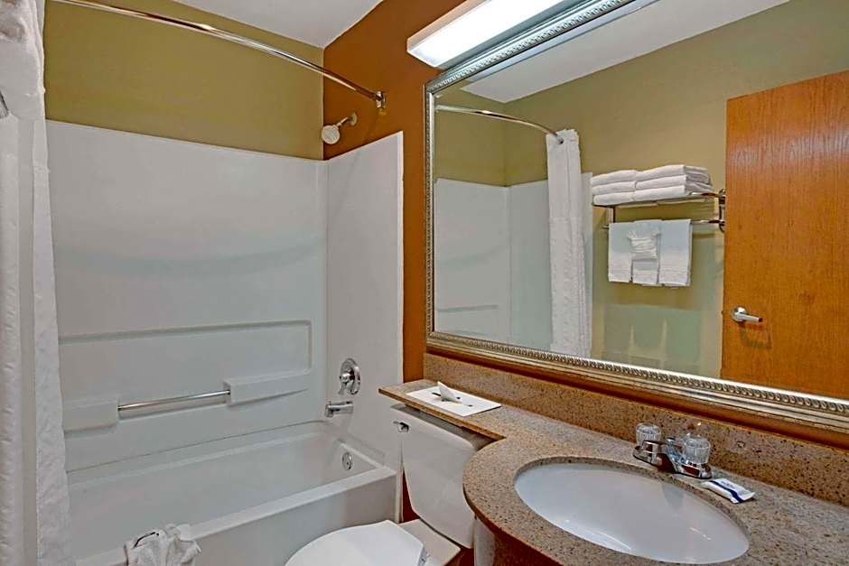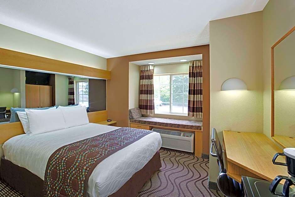 This room features a microwave, small refrigerator, and 32-inch flat-screen cable TV.